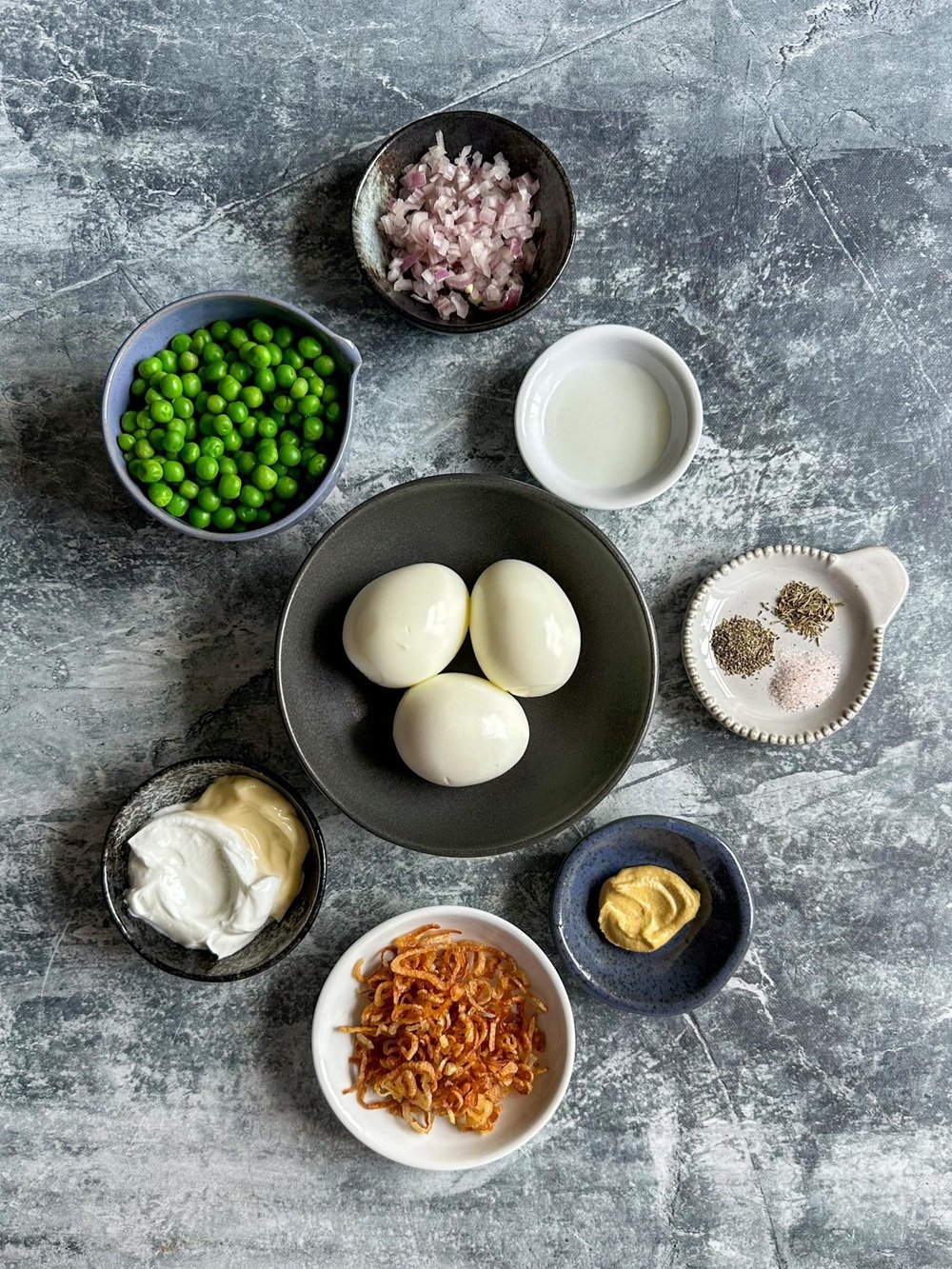 Ingredients For Egg Salad And Peas